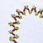 When I started researching and documenting hand embroidery stitches way back in 2007, many stitches looked similar in their basic technique. To make identifying easier, I started categorizing them into different groups. I call each group a Stitch Family. This categorization should help you in easy reference, and for identifying and selecting the stitches. The Stitch Families are placed in alphabetical order. 🙂 Hover over the images for the alternate names in different popular languages.