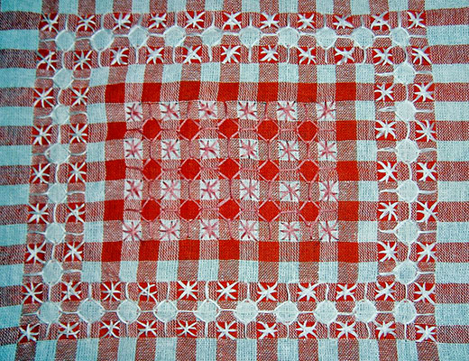 This kind of embroidery had been developed to make the checkered cloth look more attractive. But, there is no rule that you cannot try this on a plain cloth. 🙂 There is always a scope to experiment.
