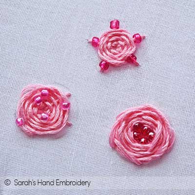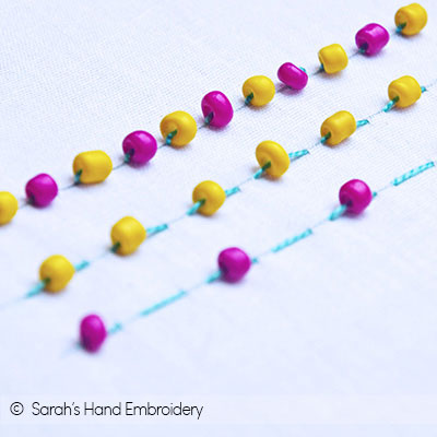 Hand Embroidery stitches can be used beautifully to apply embellishments to the fabric. Beads are some of the most common decorations used to add glitz and texture to your work. When you use hand embroidery stitches to secure beads, the embellishments become a part of the stitch itself.
