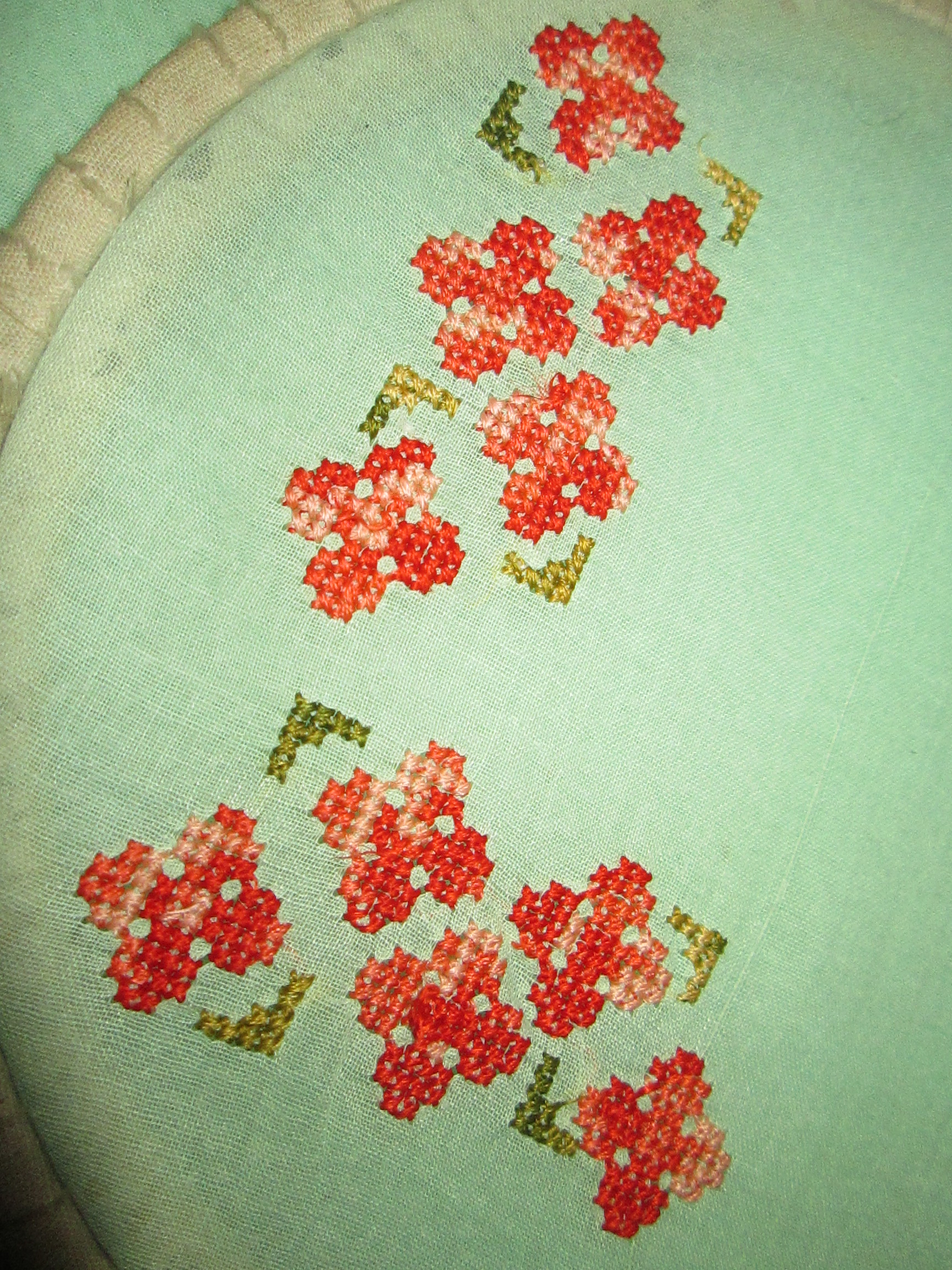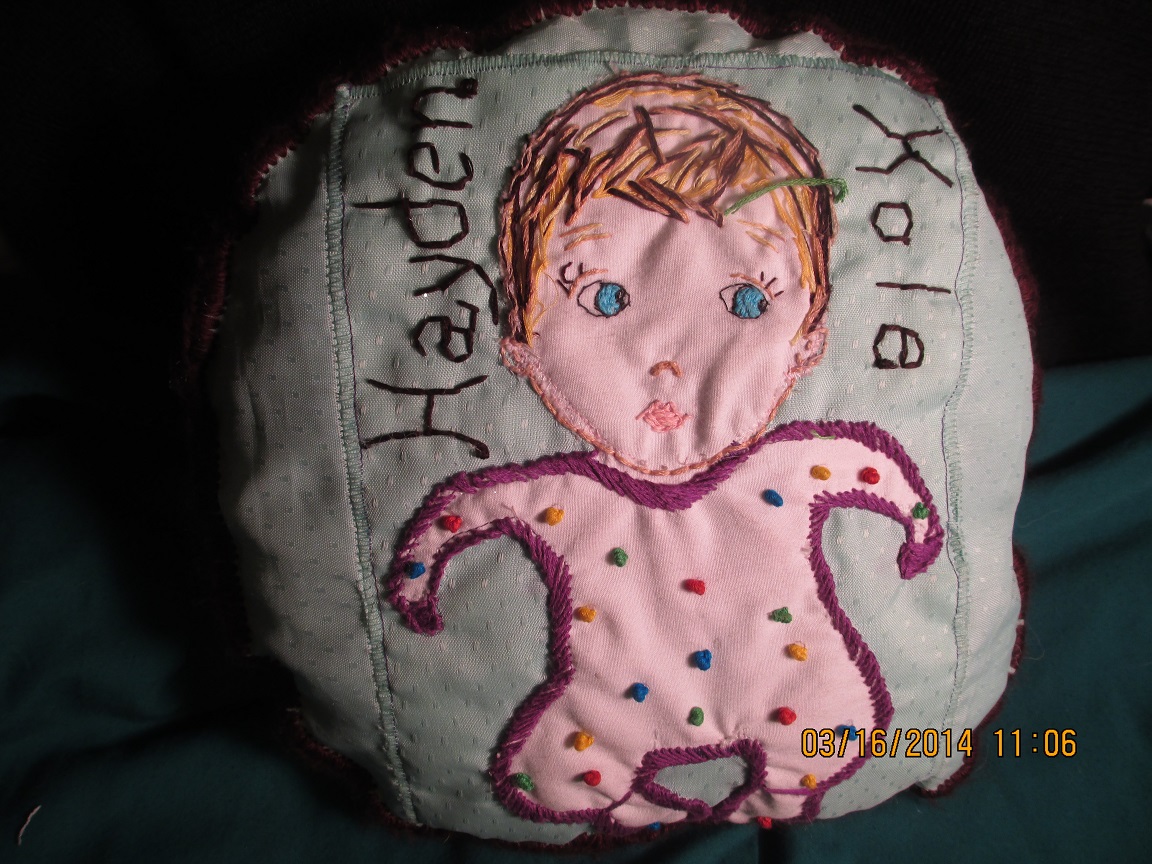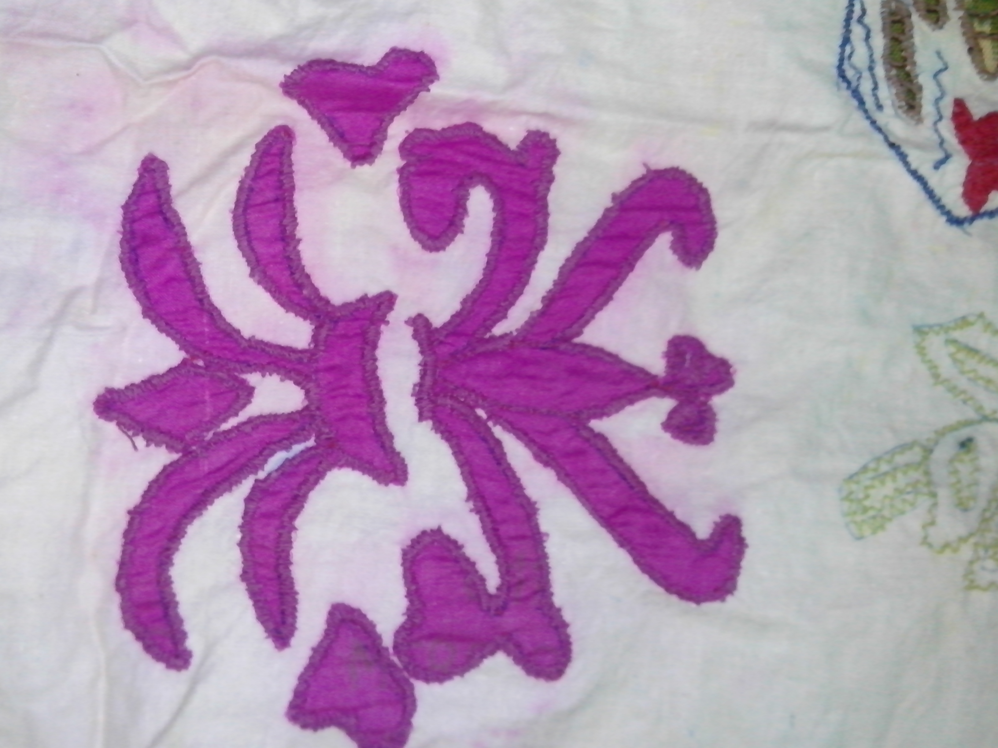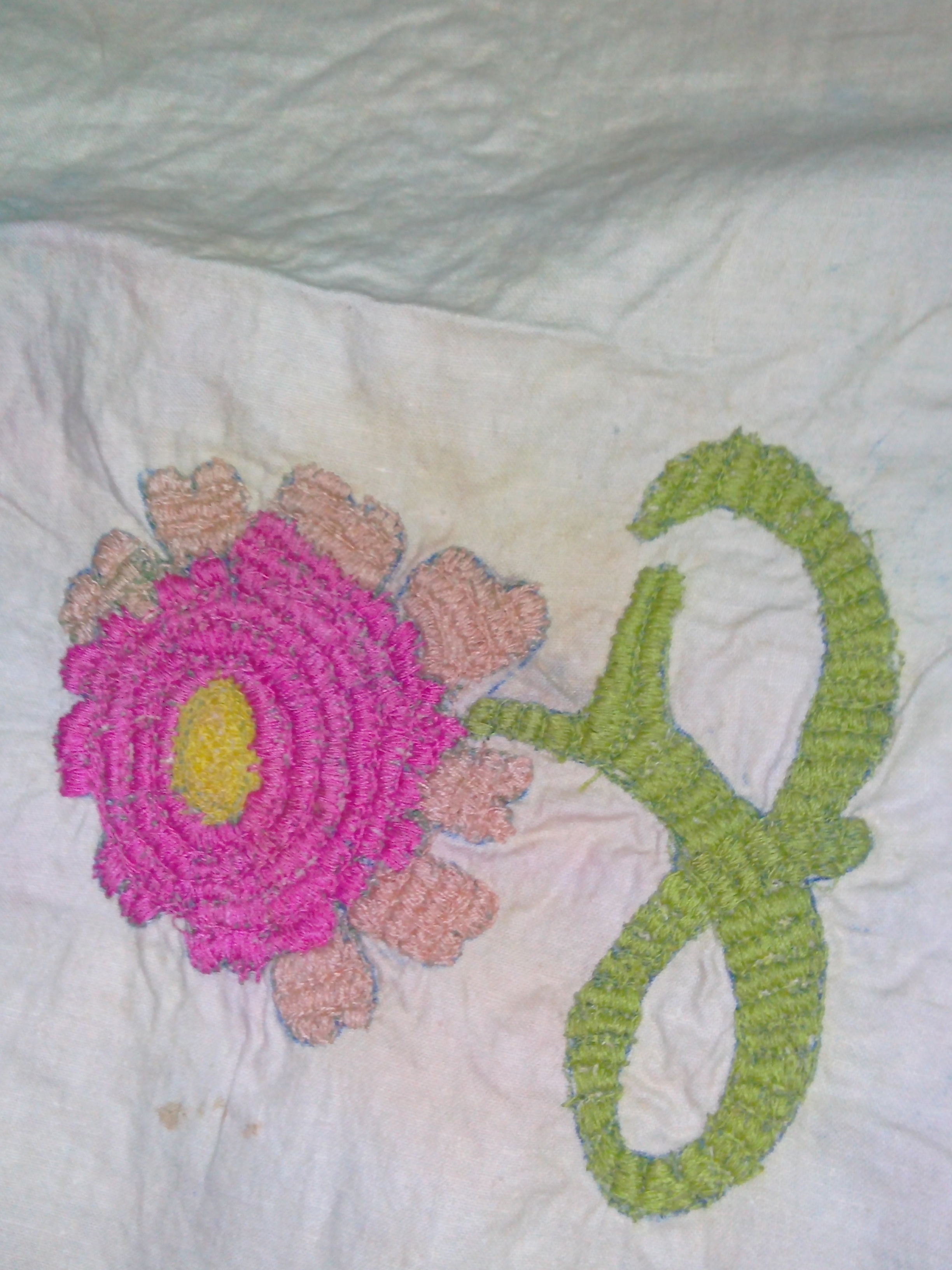 This was my VERY FIRST try at embroidery, and, it’s not very good, but I am still working at it and getting better. The stitches are random. I am very open to suggestions on how to do this particular type thing better.