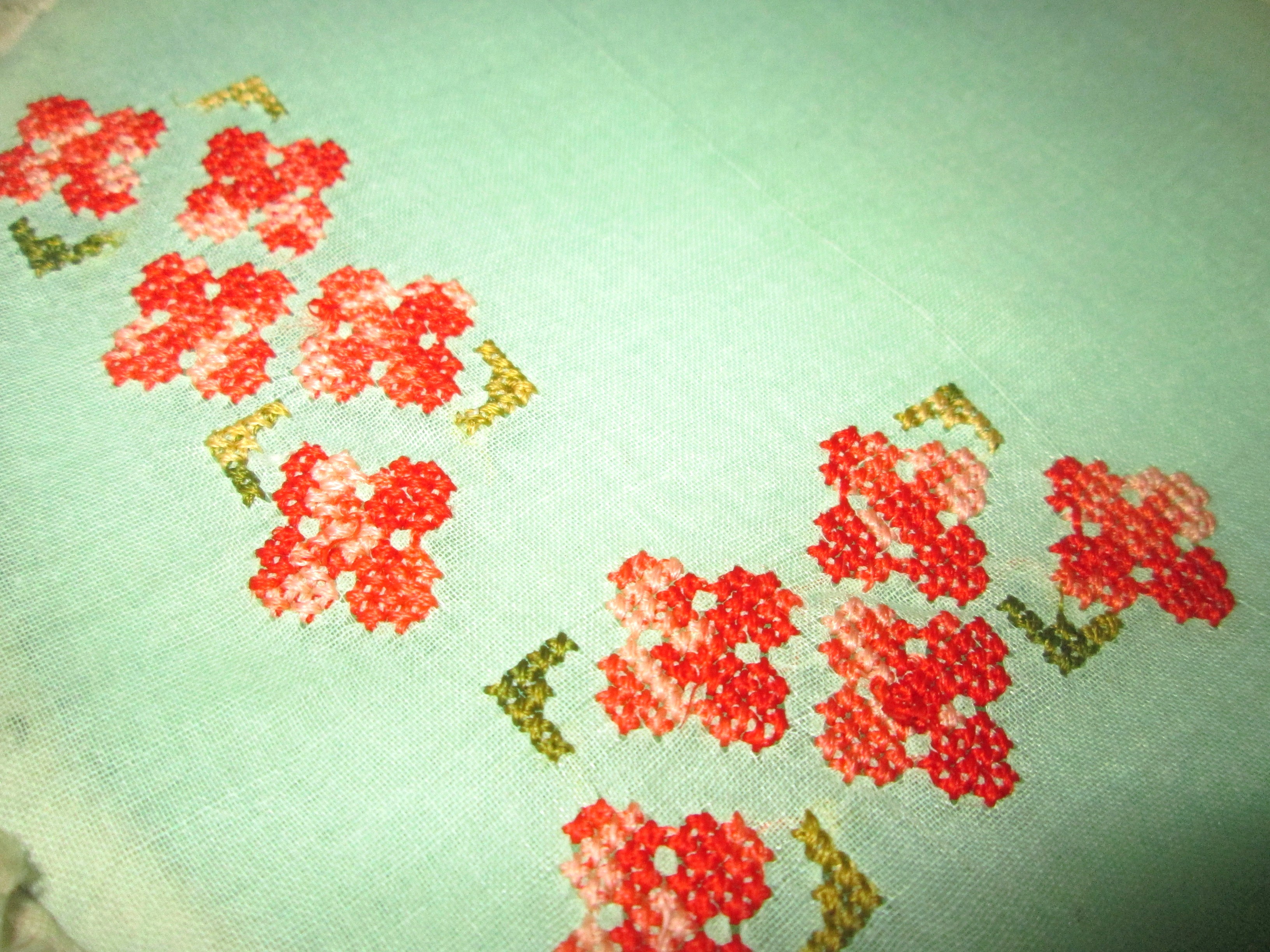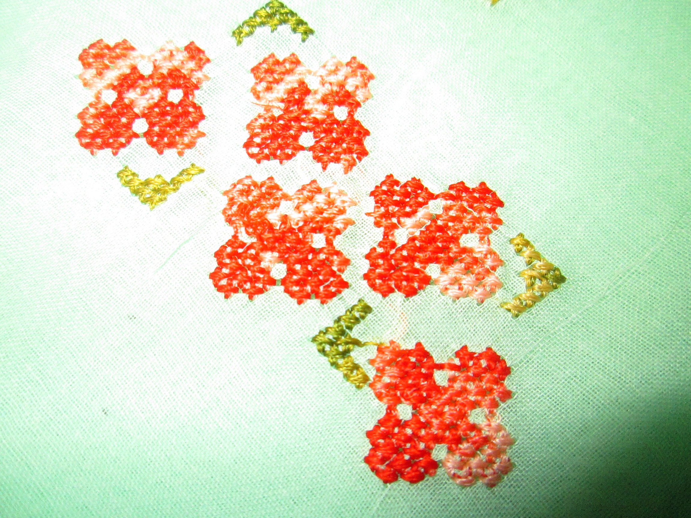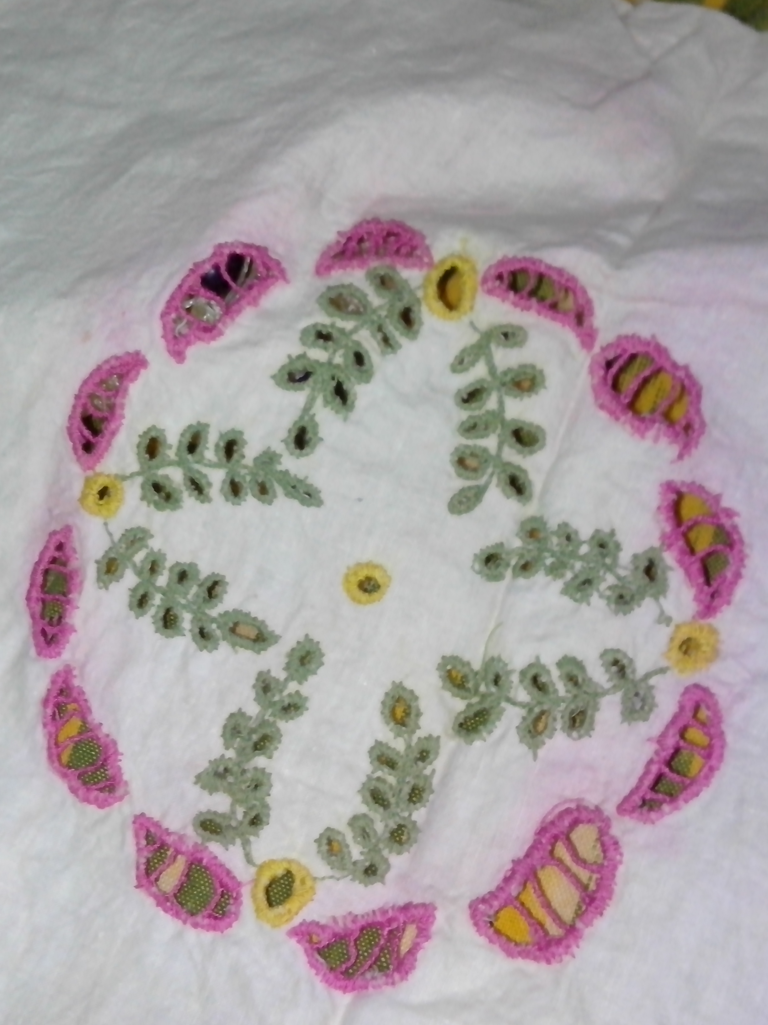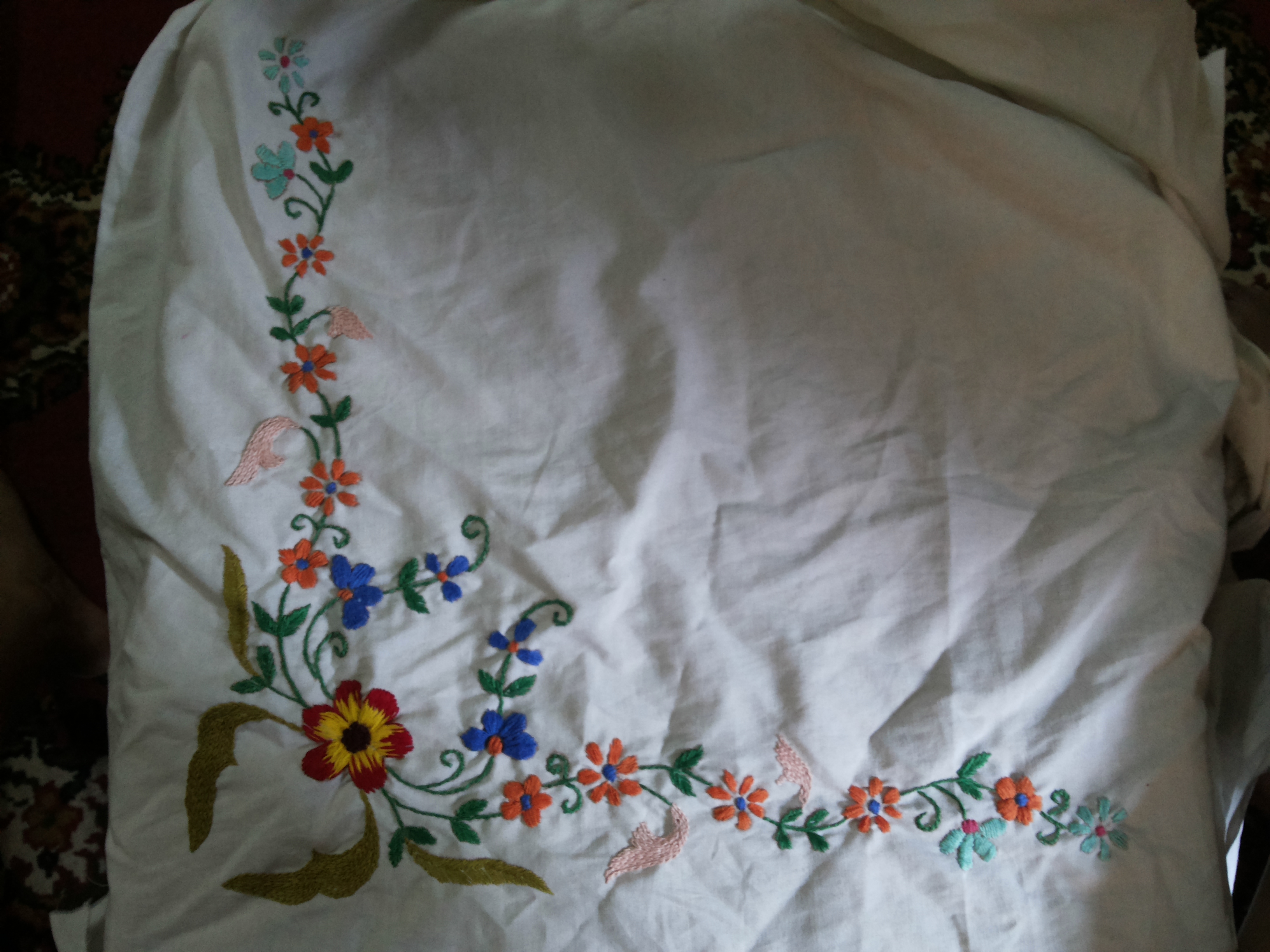 This was my VERY FIRST try at embroidery, and, it’s not very good, but I am still working at it and getting better. The stitches are random. I am very open to suggestions on how to do this particular type thing better.