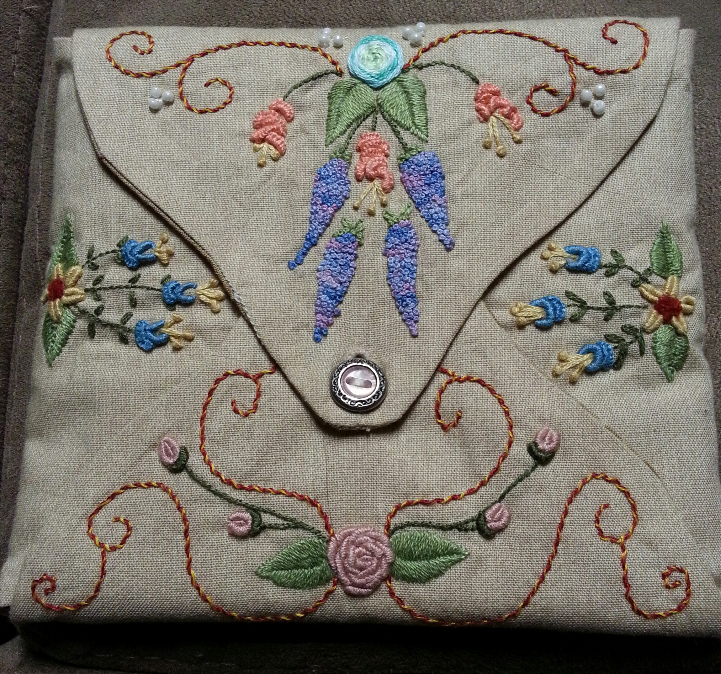 Your needlecase is beautiful and the rmbroidery is exquisite. Is this a design of your own or did you use a pattern. I would love tp try my hand at making one for myself.
