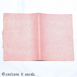 Fig 5: Now, start tracing over the design with the blunt pencil. Make sure that you are applying a good amount of pressure to make sure that the design is being transferred. It is suggested that you peek once in a while on the fabric to make sure that the transfer is happening. You will require doing this only the first couple of transfers, just until you understand what amount of pressure to apply with your pencil. If the pencil tip is sharp, you might end up tearing the design sheet. Make sure that you have run over all the lines of the design! Fig 6: A finished transferred design over the fabric will look like this. Since I had used a red carbon sheet, the transfer will look red. If getting a Tailor’s carbon sheet is difficult for some of you, try the ordinary carbon sheet, but in lighter colors. Using dark-colored carbon sheets can leave smudge marks after the transferring.