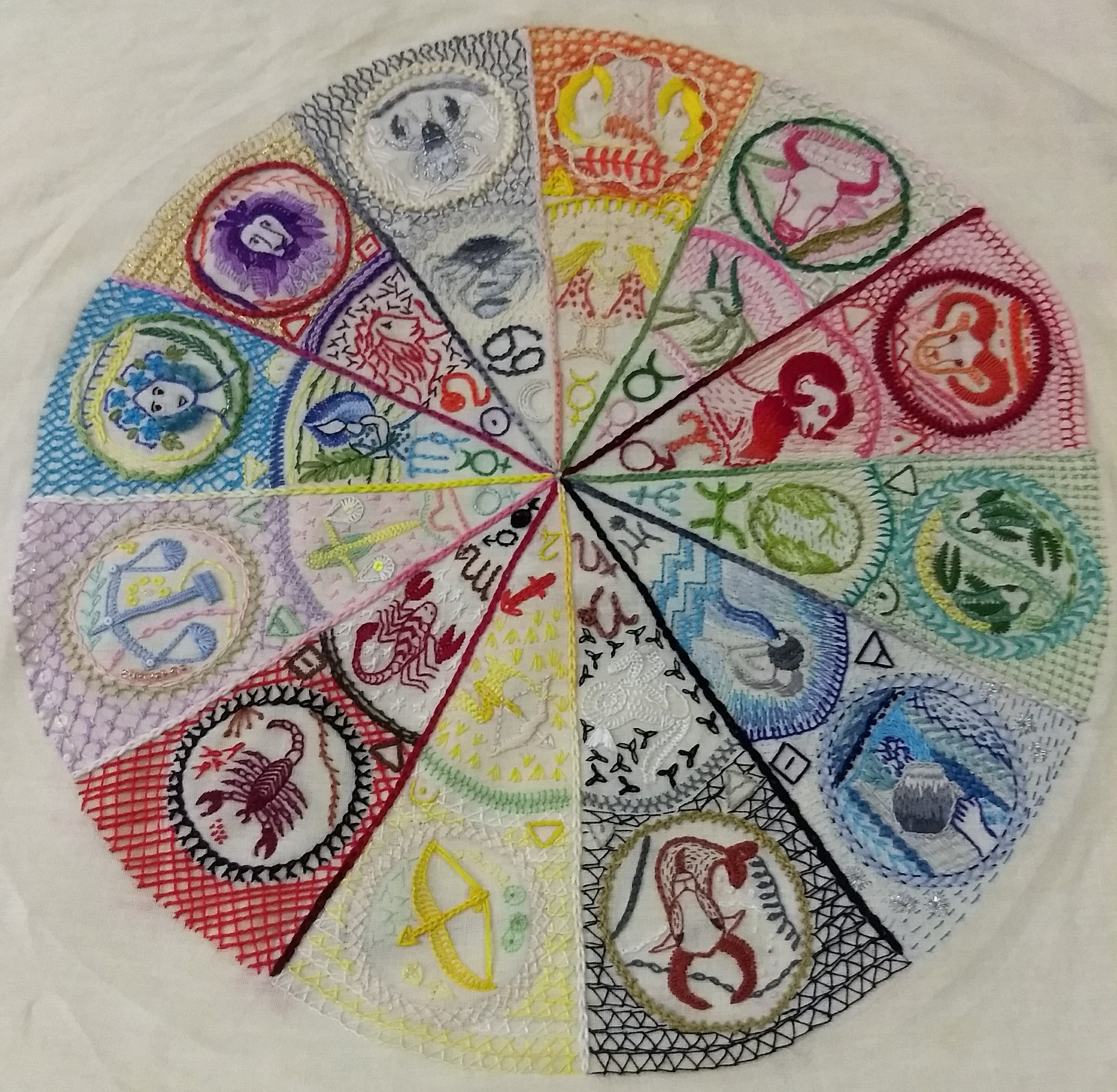 Wow, Sujatha! What a wonderful piece of work! So nice to see this year long finished project. Did you dedicate each month to work on each zodiac sign? You’ve done a beautiful job!