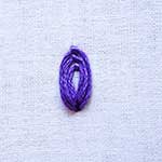 Fig 2: Pull out the needle out to tighten the loop. Put in the needle just outside the chain created and that will finish the lazy daisy stitch. |