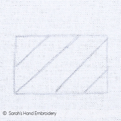 | Fig 5: Continue by anchoring down C-D with tiny straight stitches to fall on the diagonal stitch lines. | Fig 6: The finished filled pattern looks like this. Note how the couching threads have made a pattern where the diagonal stitch lines were. |