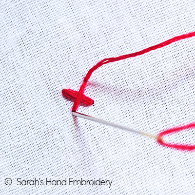 Fig 2: Make another diagonal stitch to complete the cross. Again, make a layer of one more stitch to make the stitch plumper. |