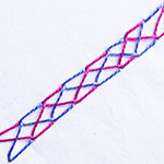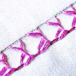 This stitch is very decorative and easy to do. The Bonnet Stitch is worked from right to left. I will work between two straight parallel lines to show this stitch.