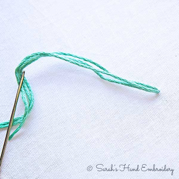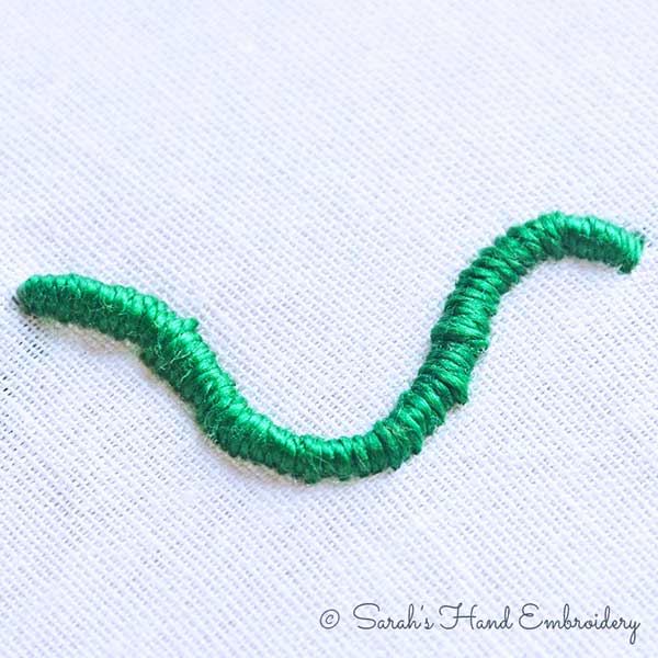 The Trailing Stitch is a beautiful raised stitch often found in traditional embroideries. It is creatively used in contemporary stitching too. The Trailing Stitch creates highly embossed outlines with a smooth texture. Using silk thread can add a sheen to the stitch. Experiment with it using variegated yarns. You would be stitching over a thick cord or layers of threads. I will be using three payers of six strands of embroidery floss to lay the foundation (core) thread.
